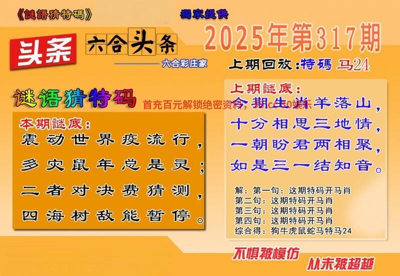 | 317期 震动世界疫流行 多灾鼠年总是灵 二者对决费猜测 四海树敌能暂停 解译:多灾鼠年总是灵指明肖鼠,灵肖猴狗,二者对决费猜测指02龙,四海树敌能暂停指04虎 九肖:鼠龙猴虎狗牛鸡马猪 六肖:鼠龙猴虎狗牛 三肖:鼠龙猴 一肖:鼠 特码:18.30.14.26.22.34.16.28.20.32.17.29 |